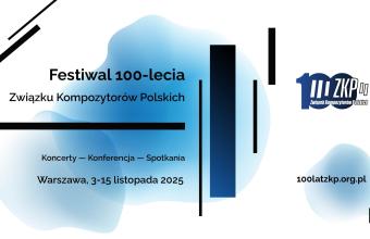 W 2025 roku Związek Kompozytorów Polskich obchodzi jubileusz 100-lecia istnienia i zaprasza na wyjątkowy Festiwal Jubileuszowy, który odbędzie się w dniach 3–15 listopada w Uniwersytecie Muzycznym Fryderyka Chopina, Studiu Koncertowym Polskiego Radia...