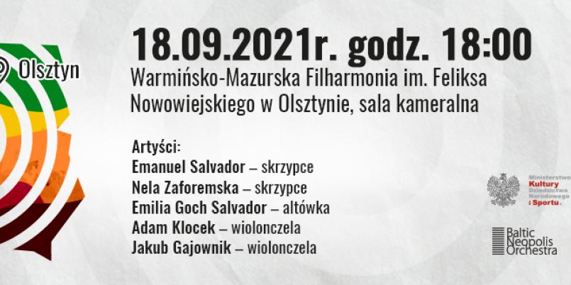 - 19.06.2021 stART – cykl koncertów młodych muzyków z Baltic Neopolis Orchestra Baltic Neopolis Orchestra stART Projekt „„stART – cykl koncertów” – to cykl koncertów, a jednocześnie program edukacyjny stworzony przez szczecińską orkiestrę kameralną Baltic Neopolis Orchestra. Projekt corocznie umożliwia młodym, profesjonalnym muzykom (wyłonionym drogą...