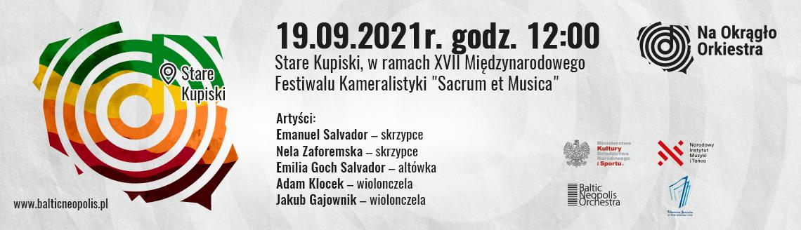 Gorzów Wielkopolski, Stare Kupiski (k. Łomży) , Olsztyn i Grodno – to miasta, w których w 2021 roku wraz z Emanuelem Salvadorem – koncertmistrzem Baltic Neopolis Orchestra wystąpią min.: Konstantin Heidrich (wiolonczela) – Faure Quartett, profesor wiolonczeli w Universität der Künste Berlinie; Andriy Viytovych (altówka) – jeden z najlepszych i najwszechstronniejszych brytyjskich altowiolistów, Vasko Vassilev – koncermistrz Royal Opera House Covent Garden w Londynie, Adam Klocek- znakomity polski dyrygent i wiolonczelista, Emilia Goch Salvador- altowiolistka, dyrektorka Baltic Neopolis Orchestra czy skrzypaczka Nela Zaforemska. Ponadto w projekcie udział wezmą artyści Baltic Neopolis Orchestra i Akademii BNO. Charyzmatyczni artyści, brawurowy program, wielkie muzyczne emocje – Na okrągło!