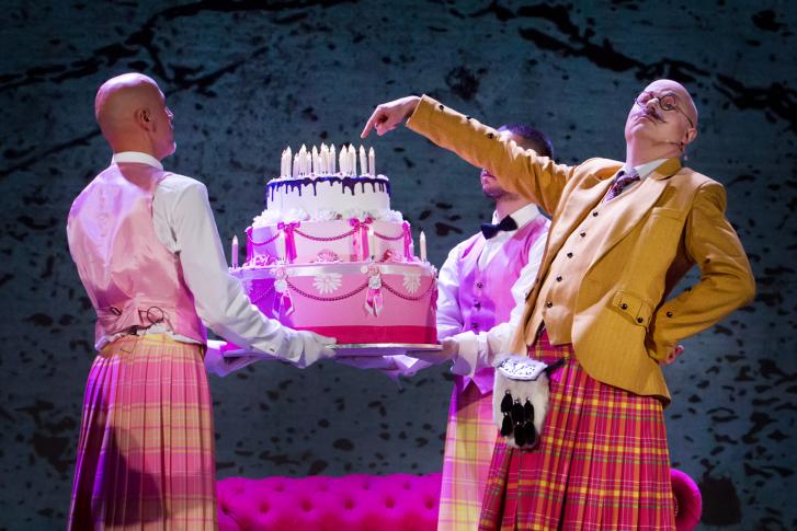 Na szczęście w inscenizacji w Mazowieckim Teatrze Muzycznym nie było unowocześnień, nawiązań do internetowej teraźniejszości. Gdyby reżyserka Beata Redo-Dobber dołożyła do całości ten kontekst, efekty mogłyby być różne. Szczególnie że sceniczna adaptacja powieści przygotowana przez Barbarę Wachowicz w 1978 r. (z tekstami piosenek Barbary Ślaskiej), zawiera już swoistą interpretację „Błękitnego zamku”. Aby przyjemnie się spektakl oglądało, aby nabrać nieco dystansu to tej wiktoriańskiej, egzaltowanej powieści, librecistka postanowiła puścić oko do publiczności. Postaci, widziane oczami głównej bohaterki, są przerysowane, momentami zbyt krzykliwe, zbyt zabawne, męczące. Pewnie tak, jak męczyły Joannę ciągłymi uszczypliwościami, zarzutami o staropanieństwo, niesmacznymi dowcipami. Świetnie to przerysowanie oddają kostiumy Marii Balcerek. Różowy kilt w żółtą kratę? Sukienka w panterkę? Koszmarek! Na tym tle Joanna w popielato-niebieskiej sukience, Eddie w dżinsach i skórzanej kurtce albo ryczący Abel w koszuli i wytartych spodniach ogrodniczkach wyglądają nadzwyczaj normalnie. A widzowie nie mają wątpliwości, komu kibicować i którzy z bohaterów nadają na tych samych falach.