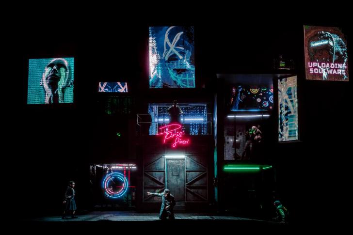 Pokażę opowieść futurystyczną w klimatach Blade Runnera. Po raz pierwszy bawię się w szalenie estetyzującą opowieść o dystopijnym mieście przyszłości. W konwencji filmowej, a może wręcz komiksowej, chcemy opowiedzieć historię właściwie kryminalną. Chciałem odejść od tego, co robiłem ostatnio, zmienić estetykę, spróbować czegoś innego, bardziej ironicznego, komiksowego, cyberpunkowego, campowego. A zderzenie czarnego kryminału z operą prosi się o camp. Z jednej strony mamy detektywa w prochowcu, który w ciemnej ulicy pali papierosa, z drugiej barokowe sceny zbrodni, z ofiarami związanymi węzłami shibari i diamentami wstawionymi w oczodoły