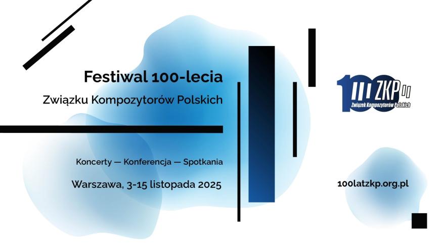 W 2025 roku Związek Kompozytorów Polskich obchodzi jubileusz 100-lecia istnienia i zaprasza na wyjątkowy Festiwal Jubileuszowy, który odbędzie się w dniach 3–15 listopada w Uniwersytecie Muzycznym Fryderyka Chopina, Studiu Koncertowym Polskiego Radia im. Witolda Lutosławskiego i Filharmonii Narodowej! Na Festiwal 100-lecia, współorganizowany przez Narodowy Instytut Muzyki i Tańca oraz Program 2 Polskiego Radia, złożą się koncerty przygotowane przez Oddziały ZKP z całej Polski, koncert specjalny „Stulecie Związku Kompozytorów Polskich i Osiemdziesięciolecie Polskiego Wydawnictwa Muzycznego”, a także 54. Konferencja Muzykologiczna „Muzyka, pamięć, historia" oraz interaktywna gra online przygotowana przez Koło Młodych ZKP.