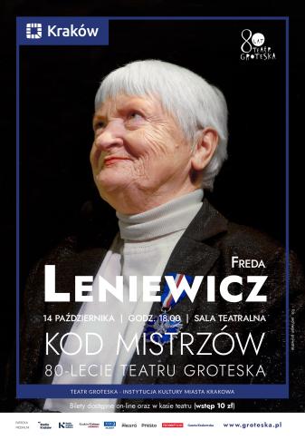 Pierwsze spotkanie z cyklu Kod Mistrzów w tym sezonie, rozpoczynające świętowanie jubileuszu 80-lecia Teatru Groteska. Gościem będzie wieloletnia dyrektor naczelna i artystyczna sceny, Freda Leniewicz. Spotknie odbędzie się 14 października o godzinie 18.00 przy ul. Skarbowej 2 w Krakowie.