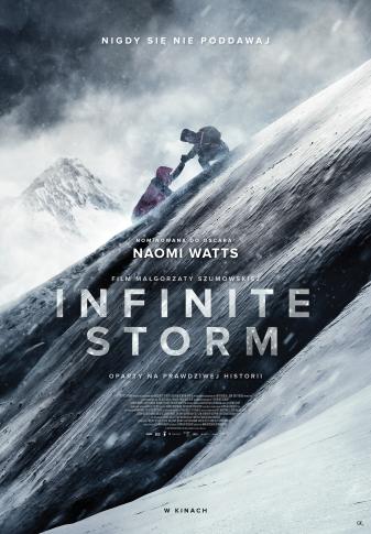 „Infinite Storm”, pierwszy amerykański film Małgorzaty Szumowskiej, to zapierająca dech w piersiach i mrożąca krew w żyłach wyprawa w jedno z najbardziej niebezpiecznych górskich pasm świata, gdzie porywy wiatru sięgają 300 km na godzinę, a pogoda zmienia się nieustannie.