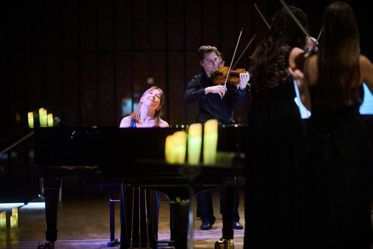 Prawdziwa kolacja „na cztery ręce” nie mogłaby się oczywiście odbyć bez udziału fortepianu, którym podczas koncertu zawładnęła Julia Kociuban – pianistka, absolwentka Uniwersytetu Muzycznego Fryderyka Chopina i salzburskiego Mozarteum, a obecnie również wykładowczyni Akademii Muzycznej im. Grażyny i Kiejstuta Bacewiczów w Łodzi.