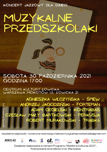 Już 30.10.2021 w Centrum Kultury Łowicka odbędzie się wspaniały jazzowy koncert dla dzieci, na którym usłyszymy piosenki z pierwszej płyty "Muzykalne przedszkolaki".