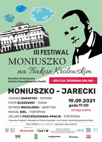 W najbliższą niedzielę 19.09.2021 o godzinie 17 odbędzie się transmisja online kolejnego koncertu w ramach III Festiwalu Moniuszko na Trakcie Królewskim.