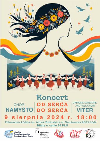 9 sierpnia o godz. 18.00 w Filharmonii Łódzkiej zapowiada się wieczór pełen muzyki, tańca i wzruszeń. Stowarzyszenie Organizacji Ukraińskich w Estonii, Zespół Pieśni i Tańca „Viter” oraz Chór „Namysto” zaprezentują ukraińskie pieśni i tańce ludowe. Artyści wystąpią w strojach narodowych.