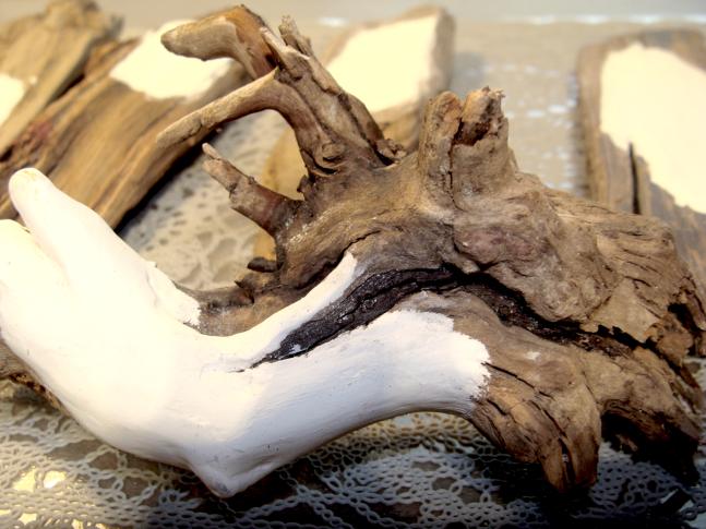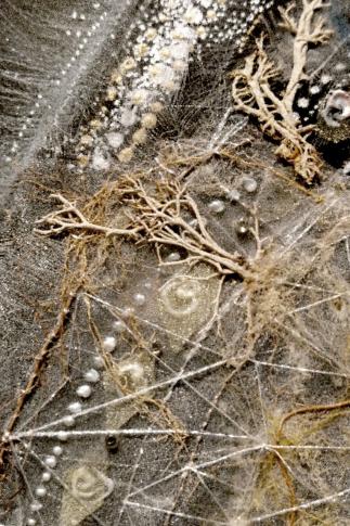 Większość ludzi nie wyobraża sobie nawet, jak piękne są korzenie! Poskręcane, czasem bardzo długie i mocne, z mnóstwem rozgałęzień, korzonków i cieniutkich korzeni włosowych przypominają plątaninę żył i tętnic. Stąd też mój pomysł, by korzenie – odpowiednio pomalowane – w moich pracach malarskich przypominały naczynia krwionośne. Często do obrazów i tkanin doszywam korzenie traw. Znajduję je na dzikich plażach, gdzie piasek osypujący się z wydm ukazuje piękno korzeni rosnących tutaj roślin. Na brzegu morza znajduję oczyszczone i wytrawione w słonej wodzie piękne okazy gotowe, by tworzyć z nich sztukę. Las i ogród są również terenem moich poszukiwań. Z korzeni zbóż oraz ich słomy tworzę autorski papier czerpany, dodając piękne, półprzeźroczyste fragmenty gotowanych porów, które, poprzez ich postać łodygi pozornej, też można zaliczyć do korzeni. Giętkość korzenia pozwala na nadawanie mu różnych form. Jest okręgiem w jednej z warstw w haftowano-malowanym przekroju przełyku. Jest w papierowym modelu ludzkiego serca. Jak już wspomniałam, bardzo często w moich pracach korzenie grają rolę naczyń krwionośnych. Owijam je niebieską lub czerwoną nitką i już zamieniają się w żyły i tętnice. W obrazie „Wenecja”, gdzie staram się pokazać, jak według mnie Miasto na Wodzie wygląda pod wodą, korzenie są korzeniami. Tak jak i na wpół przestrzennej pracy, opowiadającej o przemyśleniach Leonarda da Vinci, gdzie toskański mistrz porównuje rozwój serca u płodu do kształtującej się rośliny. Podoba mi się połączenie korzenia wyłowionego z morza z papierem z korzeni zbóż i traw. Szyszynka widziana pod mikroskopem, wyhaftowany przeze mnie organ, również ma parę „szlaczków” z korzeni traw oraz „plamy” z czerpanego papieru z ekskrementów słonia. Wiemy, że korzonki są dla tego zwierzęcia przysmakiem. Również powiększony wiele razy, mikroskopowy obraz hipokampa, maleńkiego organu w układzie limbicznym mózgu, ma „korzenne ścieżki”. Jego górną warstwę zrobiłam z porostów (wraz z korzeniami), korzeni alg z Atlantyku i oczywiście z czerpanego papieru. Piszczałki z pora ma prototyp organów papierowych Leonarda. „Kanon kołowy” ozdobiłam wijącym się korzeniem trawy. Fragment grubszego korzenia trzyma wykonaną przeze mnie książkę artystyczną, czyli taką, której się nie czyta, lecz ogląda. Ostatnio zachwyciłam się korzeniem paproci, przygotowując go do farbowania. Czeka na swoją kolej. Niektóre wyrzucone przez morze korzenie pokryłam gruntem z kleju króliczego i kredy, by na wyszlifowanych fragmentach, przy pomocy tempery jajowej, tworzyć złocenia oraz obrazki i wzory. Korzenie, zwłaszcza ryżowe, służą mi do robienia pędzli. Tworzę je również z traw i piór, by na obrazie uzyskać niezwykłe, dające złudzenie przestrzeni i lekkości tekstury oraz wzory. Kiedyś udało mi się odnaleźć w jednej z paryskich bibliotek wzornik tkanin na jesienne stroje dla żony Ludwika XV – Marii Leszczyńskiej. Sporządziłam więc własny wzornik tkanin letnich oraz zimowych, niejeden raz używając korzeni, korzennego papieru oraz wiązki korzennej pora, z której zrobiłam frędzle. Z fascynacji muzyką gitarową powstały rozety lutni, gitary oraz vihueli, gdzie znowu wykorzystałam elastyczność korzeni traw. To samo zdarzyło się, gdy powstawała moja spirala Fibonacciego. Skąd biorę korzenie? Najczęściej zbieram w lesie, nad morzem, w górach. Jeżeli coś wyrywam, to tylko we własnym ogródku.