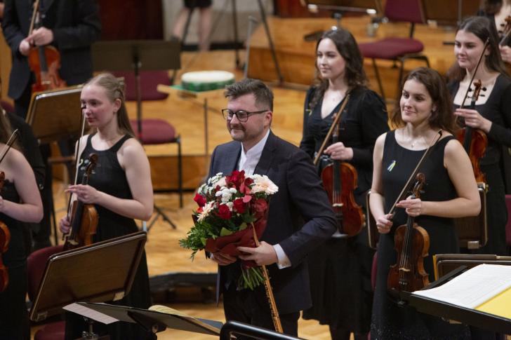Symfonia ukraińska Kałaczewskiego, zestawiona z tymi utworami, miejscami zabrzmiała blado. Nie mówię tu o jakości wykonania, które w mojej opinii było wzorowe – Ukraińska Orkiestra Symfoniczna „Nadiia”, której muzycy to w większości młodzież, zaprezentowała wyjątkową koncertową dyscyplinę pod batutą Jurka Dybała, z którym nie pracuje przecież na co dzień. W moim uchu problem tkwił w fakcie, że Symfonia ukraińska została ukończona, gdy jej kompozytor miał zaledwie 26 lat. W zestawieniu z Pendereckim i Lutosławskim zabrzmiała więc niczym urokliwa kompozycja poszukującego młodzieńca, której zabrakło dramaturgicznego sznytu i organicznej narracji. Stosunkowo wolne od tych mankamentów było Scherzo kompozycji oraz, w szczególności, jej finał – pozwoliło to zakończyć wydarzenie z przytupem, a nawet zwieńczyć je krótkim bisem w postaci fragmentu drugiej części dzieła. Silnie znużyła, niestety, pierwsza część Symfonii, w której nie znalazło się wystarczająco angażującej narracji i przekonujących napięć i rozwiązań, które mogłyby uzasadnić jej prawie piętnastominutową długość.