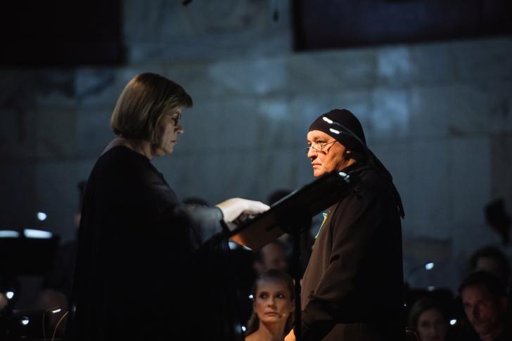 Niewątpliwie Mykietyn zadaje słuchaczowi-widzowi dyskomfort, z którym on sam musi się uporać. To dzieło wielowymiarowe i wielokontekstowe, a każda z pięciu jego części rozszarpuje myśli zanurzone w uniwersaliach o podłożu metafizycznym. Bo każdy ma swoją Golgotę, niezależnie od światopoglądu. Na tę górę wchodzi się samemu i musi boleć. Mykietyn funduje słuchaczowi muzyczne „triggery”, proponuje trasę w rytmie rozkołysanego marsza, częstuje wirującymi natrętnie motywami – jak chociażby dojmujący „odgłos” tuby, ponadto drażni fakturą i mikrotonową harmonią. Misternie dobrane instrumentarium nie łagodzi bólu, wręcz przeciwnie. Oszczędnie rozrzucone gdzieniegdzie dźwięki saksofonu, instrumentów perkusyjnych są jak piasek w oku. Mykietyn, obsadzając w roli Jezusa Urszulę Krygier (mezzosopran), wiedział, że artystka fenomenalnie słuchacza-widza zatrzyma in medias res cierpienia. Jej imponująca maestria, ale również głęboka wrażliwość artystyczna uniosły ciężar i odpowiedzialność historii konania. Szepty, jęki, długie zawodzenia, szerokie glissanda, quasi-arie, rwane słowa, głoski, wreszcie „glosolalia” brzmiały prawdą męki. Kilka długich minut wokalizy agonii, uwieńczone „wykonało się” nie może nie zapaść w pamięć. I tu poziom naturalistycznej dosłowności spotkał się z metaopowieścią, która dla każdego co innego znaczy, odmiennie jest wartościowana. Podczas gdy Jezus przedziera się przez kolejne kręgi męki, chór (zespół Camerata Silesia) „recytuje” Rodowód Jezusa Chrystusa, syna Dawida, syna Abrahama. Ten kontrapunkt w pewnym momencie staje się trudny do zniesienia. Beznamiętna fraza śpiewana w języku hebrajskim jest jak taśma Krappa, która drąży przestrzenie ludzkiej tożsamości. Kim jesteśmy w tym świecie, dla tego świata? Może rozbitkami kontemplującymi swoje klęski, błędy, zmarnowane szanse… I co nam pozostaje – samotność, pustka. Coś jeszcze?