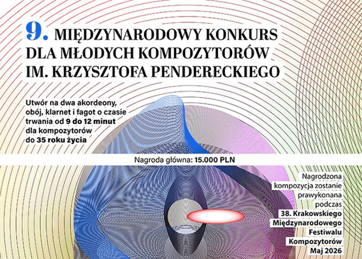 Związek Kompozytorów Polskich Oddział w Krakowie ogłasza 9. Międzynarodowy Konkurs dla Młodych Kompozytorów im. Krzysztofa Pendereckiego.