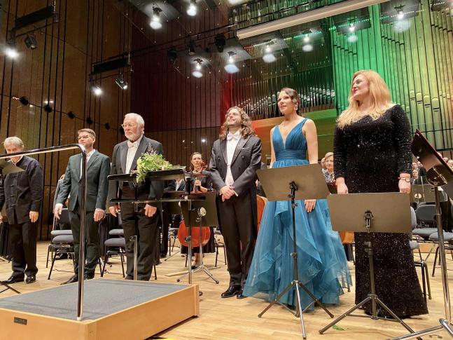 Na wielkie brawa zasłużyli soliści! Nawet najlepszego dzieła nie da się uratować, gdy wykonawcy pozostawiają wiele do życzenia. W tym przypadku artyści stanęli na wysokości zadania i wydobyli ze swoich partii najbardziej pożądane brzmienia. Muszę przyznać, że szczególnie zaskoczyła mnie Joanna Motulewicz. Dawno nie słyszałam tak pełnego, brzmiącego na tle orkiestry i chóru głosu w tym rejestrze. Pełen podziw i zachwyt dla solistki za „bezczelnie” pewne i doskonałe wejścia! Z kolei Iwona Sobotka nie pozostawiła wątpliwości co do swojej wielkości, śpiewając solo („Libera me”) na tle chóru a cappella. Śpiewaczka dała popis swoich najlepszych technicznych i interpretacyjnych umiejętności, które zachwyciły nie tylko słuchaczy, a również samą orkiestrę – wystarczyło popatrzeć na rozmarzone twarze instrumentalistów, żeby wiedzieć, że emocje sięgają zenitu w każdym zakątku tej Sali. Duet Joanny Motulewicz (alt) oraz Iwony Sobotki (sopran) to dwa wyjątkowe głosy, które w połączeniu wzajemnie się dopełniają i tworzą zjawisko brzmienia doskonałego – metafizycznego. Miałam ciarki, gdy artystki w najbardziej subtelny sposób wykonały wspólnie „Salva me”. Nieco bladziej, ale nadal z ogromną klasą zaprezentowali się panowie: tenor Piotr Buszewski oraz bas Peter Mikuláš, którzy wydobyli z dzieła Verdiego te najbardziej „operowe” cechy poprzez wyrazistą interpretację tekstu. Niestety po dłuższym czasie objawiło się u Petera Mikuláša zmęczenie, gdyż zabrakło w pewnych momentach mocnej kulminacji.