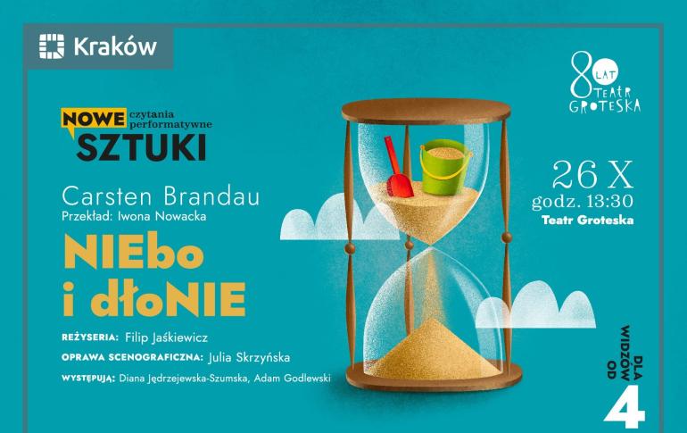 Już 26 października Teatr Groteska zaprasza na pierwsze w tym sezonie spotkanie z cyklu Nowe Sztuki – czytania performatywne. Podczas tego wyjątkowego wydarzenia zaprezentujemy „NIEbo i dłoNIE” Carstena Brandaua, jednego z najwybitniejszych i najoryginalniejszych niemieckojęzycznych współczesnych dramatopisarzy.
