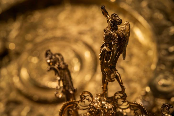 Najnowsza ekspozycja jest doskonałym przykładem wspólnego myślenia o dziedzictwie kulturalno-historycznym i – na co z pasją zwraca uwagę dr Stefano Rinaldi, jeden z kuratorów wystawy (poza Martą Golik-Gryglas i dr. Rafałem Ochęduszko), kustosz Grünes Gewölbe – unaocznia potrzebę oraz nadaje głęboki sens międzyinstytucjonalnej współpracy, która przynosi fantastyczne efekty. Drezno wypożyczyło Krakowowi m.in. srebra z królewskiego bufetu, które dziś są chlubą skarbca, bogato zdobione rzędy końskie wykorzystane przy uroczystościach koronacyjnych, płaszcz koronacyjny Augusta II, futerały na insygnia oraz futerały (w formie galeonu czy sowy) na wykonane z kryształu górskiego naczynia, kilka przykładów miśnieńskiego serwisu zwanego koronacyjnym, który pierwotnie liczył 77 elementów, plan rozmieszczenia stołów i gości w sali Senatorskiej podczas uczty koronacyjnej Augusta III, złote pończochy wykonane specjalnie do stroju galowego Augusta II, gipsowy model głowy Augusta II powstały na podstawie woskowej maski zdjętej z twarzy króla w 1704 r., potrzebnej do wykonania figury monarchy, wreszcie samą figurę naturalnych rozmiarów w stroju koronacyjnym, która, jak z przymrużeniem oka żartował dr Rinaldi, mogłaby być zaczątkiem muzeum Madame Tussauds. Muzeum Narodowe w Warszawie udostępniło komplet insygniów koronacyjnych: koron, bereł i jabłek Augusta III i Marii Józefy. W sumie zgromadzono około 130 obiektów, w tym obrazy, medale, halabardy i chorągwie. Część z nich powróciła na Wawel po blisko 300 latach… Przygotowano też sympatyczne niespodzianki, jak możliwość przymierzenia kopii insygniów koronacyjnych Augusta Mocnego, więc spodziewam się licznych dowodów odwiedzenia wystawy w postaci zdjęć na Facebooku. Wystawie towarzyszą stanowiska sensoryczne umożliwiające dotykowe poznanie wybranych eksponatów, tzw. teksty proste (teksty kuratorskie łatwe do czytania i zrozumienia) pomyślane na potrzeby osób z niepełnosprawnością intelektualną oraz tyflografiki i audiodeskrypcje. Możliwe jest także oprowadzanie kuratorskie oraz uczestnictwo w serii wykładów wokół fascynujących tematów dotyczących epoki baroku. Tradycyjnie już nie zabraknie warsztatów, np.: „Świat królewskich szat”, podczas których uczestnicy wykonają ozdoby techniką filcu, czy „Świat królewskich symboli” – tu królewskie insygnia staną się inspiracją do tworzenia własnych malowanych na tkaninach symboli. Będzie też pokaz performatywny „Z czego składa się król” oraz wiele innych atrakcji, w tym poznanie obyczajów saskiego dworu czy wysłuchanie koncertu wykonanego na instrumentach historycznych z repertuarem muzyki barokowej.