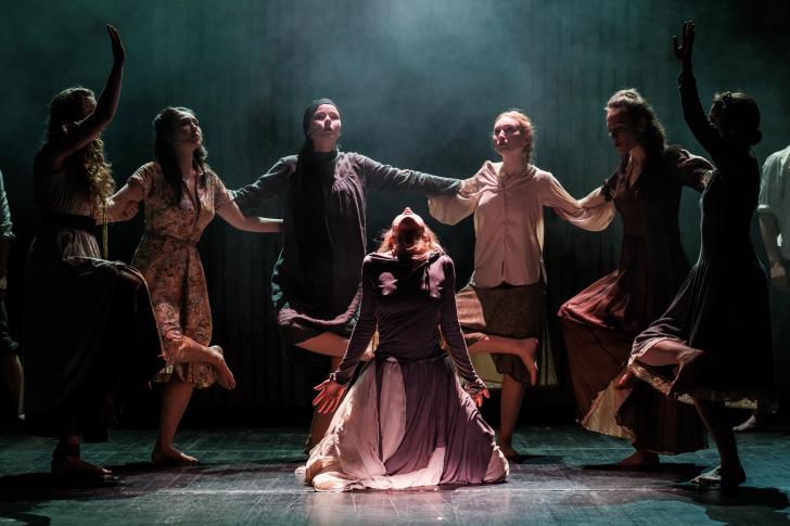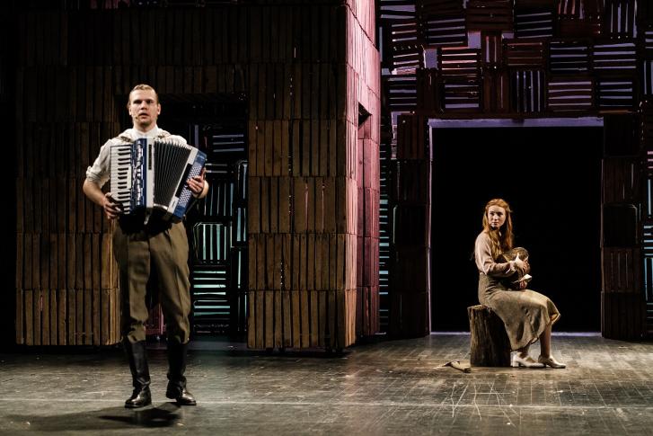 Przedstawienie zostało wystawione na scenie Teatru Collegium Nobilium przez studentów IV roku Aktorstwa Teatru Muzycznego na Akademii Teatralnej im. Aleksandra Zelwerowicza (to ich spektakl dyplomowy). Choć sezon artystyczny TCN zaczął się w tym roku z powodu pandemii COVID-19 z opóźnieniem, warto było doczekać lata, by zobaczyć tak ciekawe widowiska, jak „Prawiek i inne czasy”; spektakl bardzo dobrze wyreżyserowany (szczególnie pełen napięcia i metafizycznej aury I akt!), znakomicie zagrany, mimo że poszczególne role wydawałyby się sporym wyzwaniem nawet dla aktora doświadczonego. Bardzo dojrzale gra tu zwłaszcza Jagoda Jasnowska obsadzona w roli wiejskiej „wariatki” Florentynki, która oszalała na skutek różnych nieszczęść życiowych i której jako pierwsza okazała serce bodaj najbardziej kontrowersyjna postać w okolicy – atrakcyjna, dzika i obdarzona niebywałą intuicją Kłoska. Odgrywająca tę rolę Karolina Piwosz idealnie do niej pasuje, aczkolwiek przyznam szczerze, że mając pewne wyobrażenie Kłoski po lekturze książki Tokarczuk, wyobrażałam ją sobie jako nieco bardziej hardą w obliczu trudów życia. W ujęciu Piwosz Kłoska staje się natomiast kobietą dość płaczliwą, zarazem matką taką jak i inne – i może dzięki temu przynajmniej łatwiej nam się z nią utożsamić. Zapada w pamięć także Olga Lisiecka w roli Genowefy – udało się jej oddać zachodzące w kobiecie na przestrzeni lat przemiany. Na słowa uznania zasługuje w tym miejscu reżyserka, która dokonała trafnego wyboru poszczególnych wątków powieści. Dzięki temu historię kilku pokoleń miejscowych rodzin poznajemy głównie z perspektywy kobiet, od których los od zawsze zbyt wiele wymagał. Co więcej, udaje się uchwycić pewną symetrię pomiędzy przeżyciami Kłoski oraz Genowefy, a przecież łatwo mogło się to zagubić w mnogości wątków.