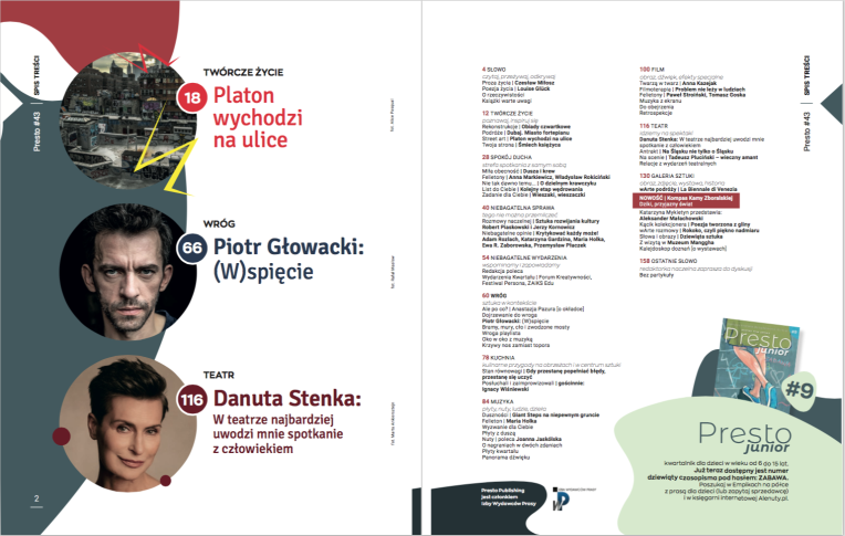 Sprawdź, co znajdziesz na 160 stronach tego Presto. A jeśli Ci się spodoba, pamiętaj, że możesz kupić aktualny numer w salonach empik, zamówić na empik.com lub w księgarni internetowej Alenuty.pl.