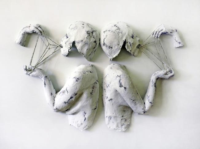 Obrazy, które widzimy dzisiaj, a które są wyznacznikiem mojego stylu, powstały w czasie, gdy uczęszczałam do liceum. Pewnego dnia wykonywaliśmy maski na zajęciach plastycznych. Tak bardzo spodobała mi się praca w papier mâché, że zaczęłam próbować tworzyć większe kształty. Wykonałam wówczas klatkę piersiową. Była to płaskorzeźba, potrzebowała zatem płaskiego tła. Całość nie mogła być ciężka, więc wybrałam płótno. W ten sposób, w 2007 roku, powstał pierwszy trójwymiarowy obraz. Moje prace charakteryzuje monochromatyczność, ponieważ uznałam, że kolory uczynią obraz przesadnym. W tym przypadku kolor zastąpił światłocień, dzięki któremu obraz wygląda trochę inaczej o różnych porach dnia i w zależności od kąta, pod którym pada światło. Najpierw tworzyłam proste formy, takie jak klatki piersiowe, później, gdy rozwinęłam swoje umiejętności warsztatowe, zaczęłam dodawać kolejne części ciała, tworzyć bardziej skomplikowane obrazy, dodawać nowe elementy, jak metalowa siatka, sznur czy puzzle. Wszystko metodą prób i błędów.
