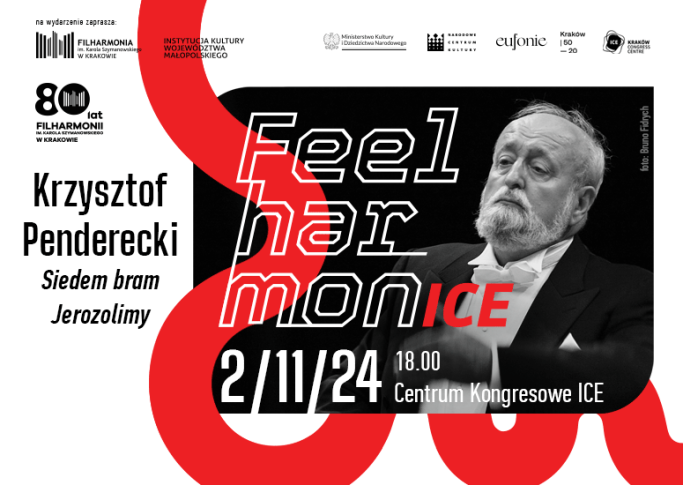 W sobotę, 2 listopada 2024 roku o godz. 18.00 w Centrum Kongresowym ICE odbędzie się nadzwyczajny koncert Filharmonii Krakowskiej z nowej serii FeelharmonICE, powstałej we współpracy z ICE Kraków. Podczas inauguracyjnego koncertu w Sali Audytoryjnej im. Krzysztofa Pendereckiego wykonane zostanie jedno z najważniejszych dzieł oratoryjnych kompozytora, Siedem bram Jerozolimy – w 91. rocznicę urodzin mistrza. Koncert odbędzie się w ramach Międzynarodowego Festiwalu Muzyki Europy Środkowo-Wschodniej Eufonie.