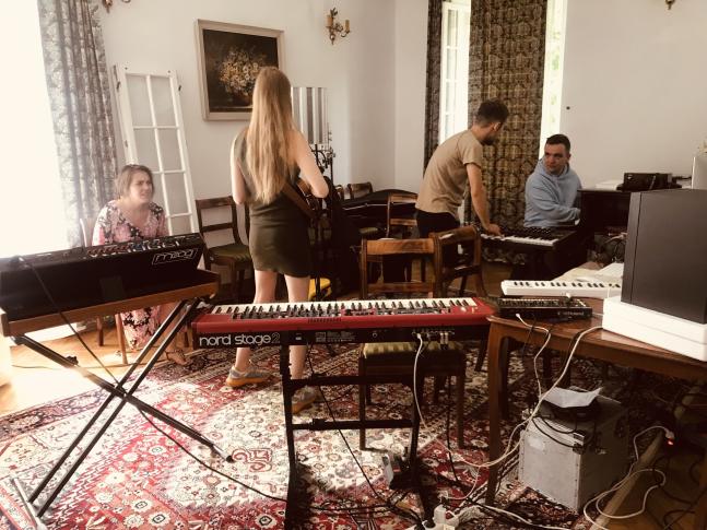 Wszyscy dziś grają w B-dur. Poważnie. Tomek ma śmiałą tezę: – Po prostu tu wszystkie ściany wibrują i dostrajamy się do siebie. – Uśmiechamy się porozumiewawczo. Szybko wczuwam się w tutejsze poczucie humoru. Jest ono wszechobecne na równi z pełnym zaangażowaniem. Tu nie ma pustych przebiegów. Każda minuta jest wypełniona pracą. Po raz kolejny jednak dociera do mnie, że nie czuć pośpiechu. Wszyscy są bardzo silnie obecni w tu i teraz. W tworzeniu. Jeśli trzeba się pochylić nad frazą, pojedynczym dźwiękiem, jeśli coś komuś nie pasuje – zatrzymują się i pracują nad jednym miejscem w piosence tak długo, aż będzie dobrze.