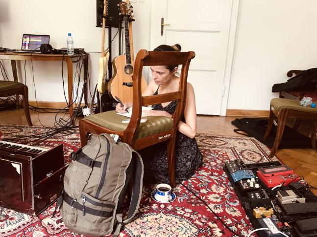 Na razie jednak jestem na kolejnej sesji. – Tu piosenki płyną prosto z serca, nie robimy nic na siłę – mówi z przekonaniem Tomek i kontynuuje z większym luzem: – Co muzycy mają w głowie? Kiedyś z Mateuszem nagraliśmy piosenkę o kacu. To był hit! Był nawet zsamplowany odgłos spuszczanej wody. – Deska klozetowa służyła nam jako perkusja – dodaje Mateusz, akordeonista. – Potrzebuję sytuacji! – przebija się dramatycznym głosem Justyna. – Może erotyk w stylu Ciechowskiego? – podpowiada Tomek. – Usłyszałem kiedyś w radiu, że dziś w przestrzeni medialnej nie ma erotyki, jest tylko pornografia, brakuje subtelności. – A może erotyk miejski? Czułość do miasta? – zastanawia się Justyna. Opowiadam o odręcznym pisaniu listów i moich przemyśleniach po tym, jak niedawno przyjaciel przysłał mi list napisany na papierze, piórem, w dodatku po francusku, w języku, którego nie znam. Wymieniamy się myślami na różne tematy, gdy wpada Dominika z tacą pełną filiżanek kawy. Nie pijam jej o tej porze, ale jakoś ulegam zbiorowej hipnozie. Kawę pije każdy! Jestem pełna podziwu dla organizatorki, która myśli o wszystkim i wszystkich. Za chwilę przekonam się, jak dokładnie pamięta, kto jaki posiłek zamówił: czy vege, czy jarski, czy bezglutenowy…