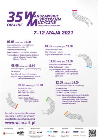 Wszystkie koncerty będą transmitowane w internecie. Dostęp do transmisji jest bezpłatny. Tam, gdzie wstęp na koncerty będzie możliwy, także będzie bezpłatny. Aktualne informacje o możliwości wstępu na koncerty będą zamieszczane na stronie internetowej Festiwalu www.wsm.art.pl.