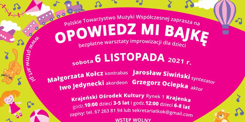 05.11.2021 „Opowiedz mi bajkę” - bezpłatne warsztaty improwizacji dla dzieci w Krajeńskim Ośrodku Kultury
