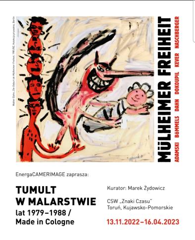 Wystawa „Tumult w malarstwie lat 1979-1985 / Made in Cologne. Mülheimer Freiheit” ma szansę stać się najważniejszym tegorocznym wydarzeniem artystycznym w toruńskim Centrum Sztuki Współczesnej „Znaki Czasu”. Wystawa towarzysząca Festiwalowi Filmowemu EnergaCamerimage jest pierwszą w Polsce prezentacją dzieł grupy niemieckich malarzy neoekspresjonistów działających w Kolonii w pierwszej połowie lat 80-tych. Wystawę, której kuratorem jest Marek Żydowicz, można podziwiać już od 13 listopada do połowy kwietnia przyszłego roku.