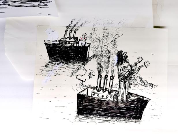 A Wilczyński – wprost i pośrednio mówi o nim cały czas. Zarówno w filmie, jak i na wystawie słyszymy jego głos i jego muzykę. Totalne myślenie autora o dźwięku jako ważnym budulcu przestrzeni filmowej sprawdziło się doskonale. Gitara Nalepy – ze strunami i bez, narysowana jest z czułością i dbałością o każdy jej szczegół! A jego piosenki – te znane i te całkowicie niszowe to na pewno wspomnienia autora ze spotkań ze swym guru. Na wystawie postać Tadeusza z gitarą, pokazana poprzez oryginalne rysunki oraz opracowaną animatorsko scenografię – zachwyca i wzrusza... Pływający wokół niego statek (może to „Batory”?) to być może odniesienie do pracy muzyków na statkach, jednej z niewielu możliwości zarobienia godziwych pieniędzy w PRL i stanie wojennym…