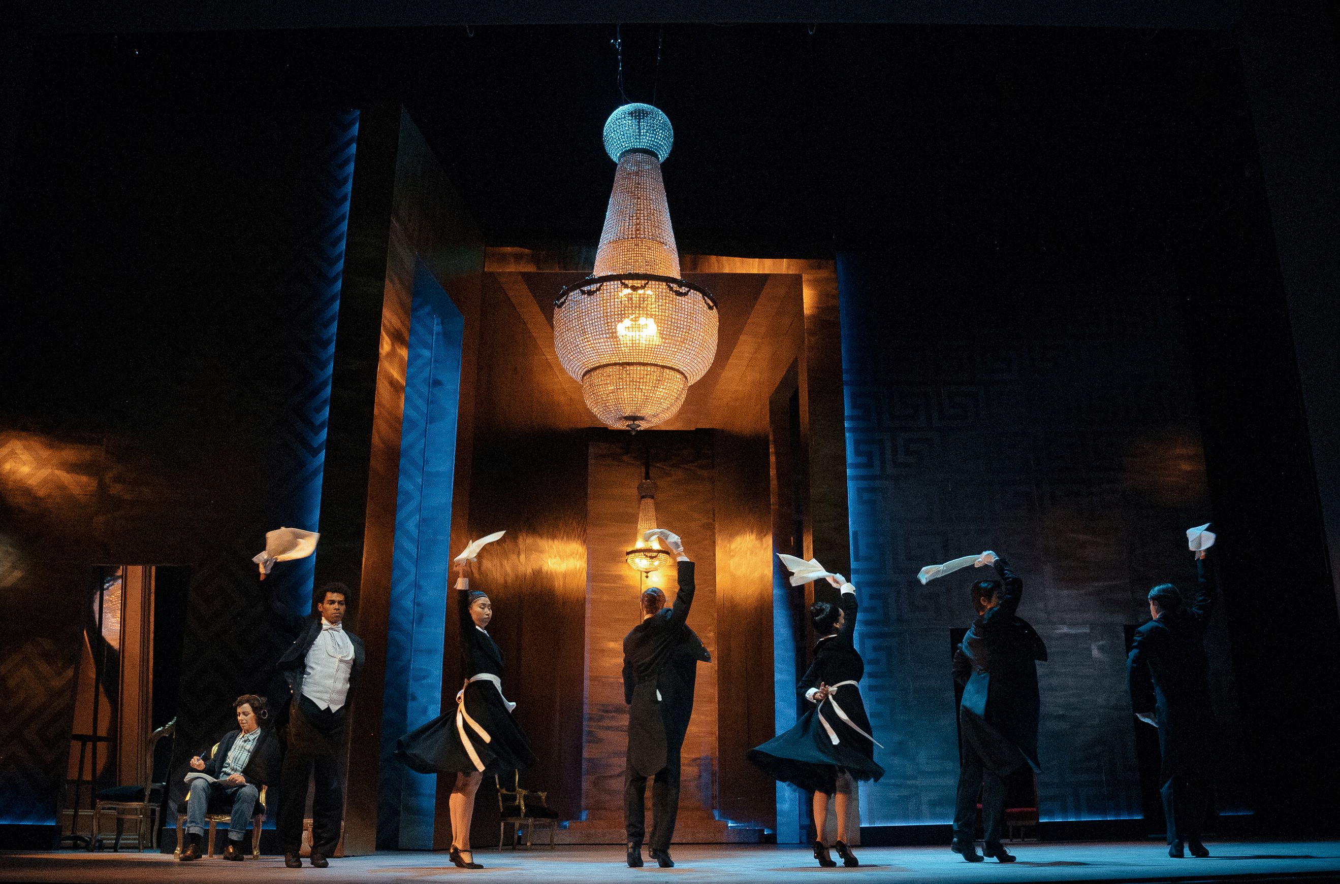 W koncepcję reżysera uwierzył scenograf Simon Lima Holdsworth, który wizualnie ziścił pomysł przenikania światów i ideę pojednania, czy wręcz połączenia ich w końcowej scenie. Świetnie w ten wizualny zamysł wpisał się kostiumograf Oren Dar. Powstał świat utkany ze snów, koszmarów, marzeń, wyobrażeń, surrealistyczny, lekko absurdalny, ale – co punktuję mocno na plus – nieprzesadzony. Reżyser, scenograf, kostiumograf, choreograf i wszyscy wykonawcy (nawet Szymon Komasa, znany z brawurowych interpretacji swoich ról operowych) potrafili zatrzymać się w odpowiednim momencie, aby nie przekroczyć granic dobrego smaku. Dzięki temu nie położyli na szali muzyki, która w tym spektaklu jest cały czas najważniejsza. A panuje nad nią Jose Maria Florencio, który zdecydowaną ręką prowadzi orkiestrę, nie za dużą, bo Strauss w partyturze postawił na jakość, nie ilość. Jednocześnie solistyczne traktowanie partii poszczególnych instrumentów sprawia, że brzmienie orkiestry jest bardzo bogate, a słucha się jej z prawdziwą przyjemnością.